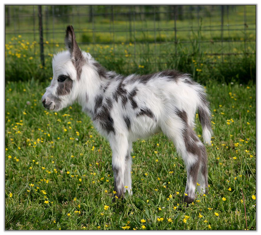 We just recently purchased Shorty back from his owner that has had him since he was weaned. We now co-own Shorty with Southern Asspitality Miniature Donkeys in Wartrace, Tennessee. We are happy to add his genetics back into our herd as he is very stocky with correct conformation, a tiny adorable head and a very laid back personality that we have found is passed on to offspring. Shorty's coat is splotchy in these photos/videos. We may try to retake his photos and videos when and if his coat evens out.