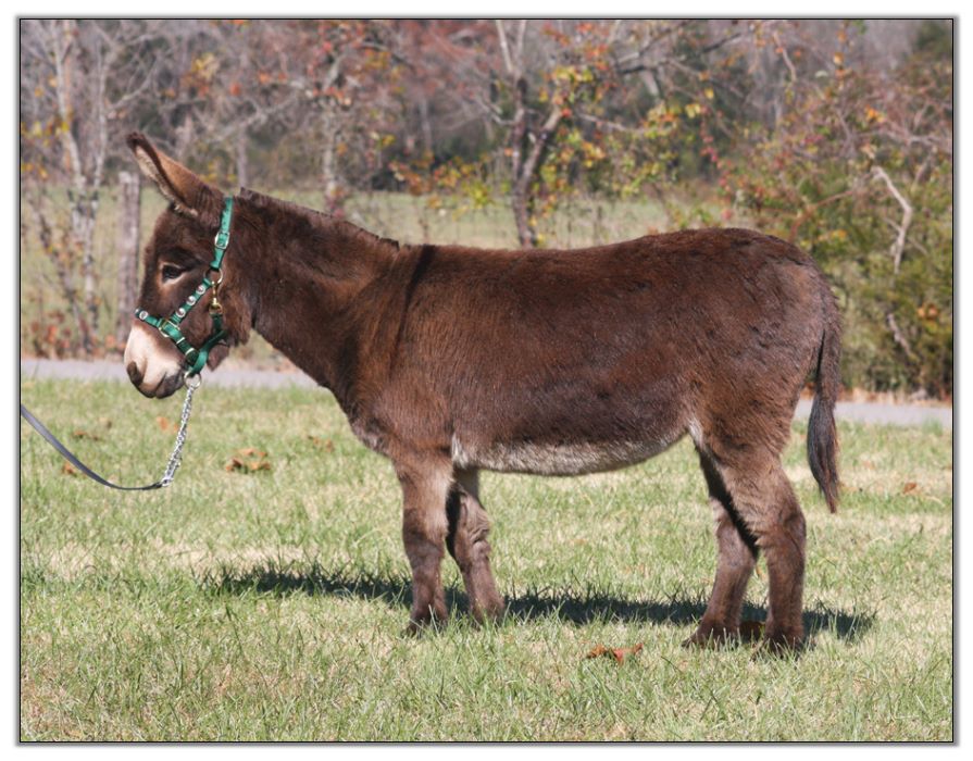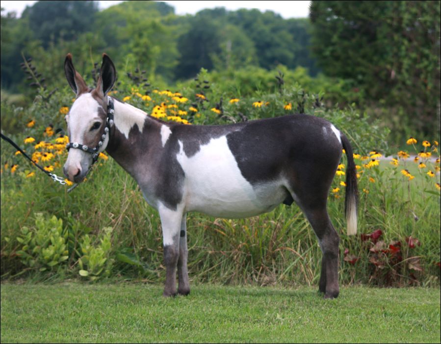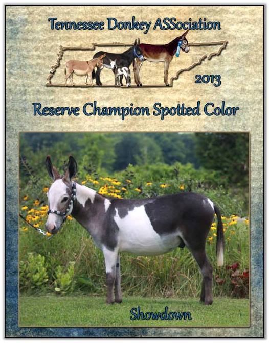 Showdown finished the show year as the official Reserve Champion Yearling and Reserve Champion Spotted Color donkey of Tennessee. We are only offering Showdown for sale because we now finally have geldings of our own bloodlines that are large enough to compete. We have a limited amount of time to work and fit donkeys for the show ring, therefore, we are offering Showdown for sale. He is much too nice to just sit in our pasture because we are spending all of our time with other donkeys. Showdown has a negative coggins report dated 3/21/14. He is up to date on all vaccinations including West Nile, hoof trimmings and dewormings. Showdown is a sweet but high strung donkey so we think he would be best with an experienced handler if you plan to show him.