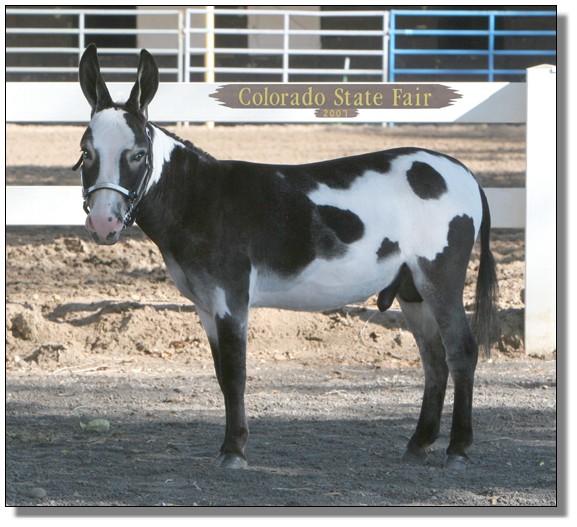 Co-owned by Rocking 615 Ranch and Half Ass Acres. This fantastic gelding is a grand son of Half Ass Acres Harlequin Jack, bred and born here at Half Ass Acres. Showdown won the Two & Under Halter Jacks/Gelding class and stood Reserve Champion Halter Jack/Gelding at the Lincoln County Fair on 9/08/13. Showdown also was 2nd in a very large spotted color class that day.