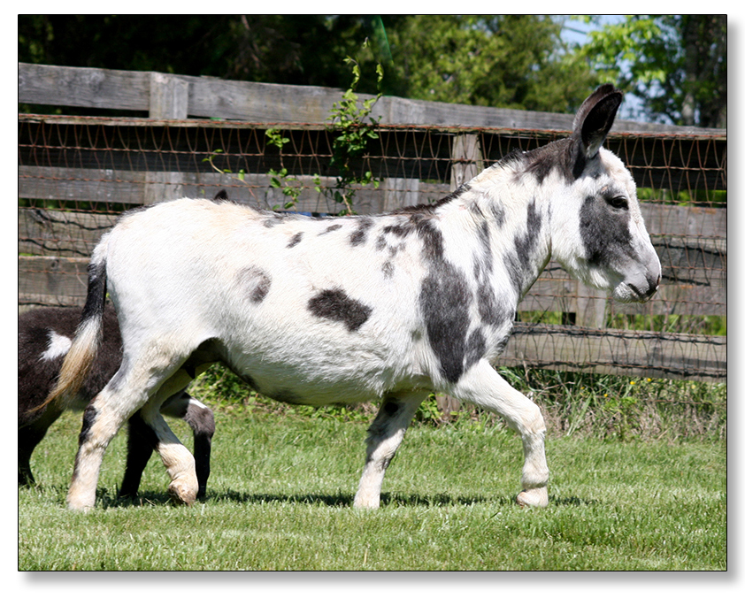 9) Dee's Much About Me, dark spotted miniature donkey jennet born at Half Ass Acres.Dee's Much About Me