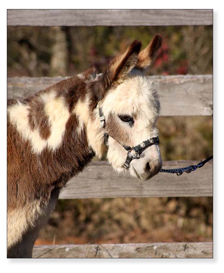 8) Dee's Little Miss Much (Missy), spotted miniature donkey jennet born at Half Ass Acres.Dee's Little Miss Much