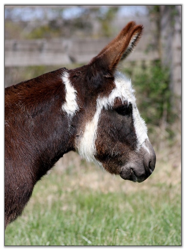 Macho was born at Half Ass Acres as his dam was sent to us to sell by our good friend, Dee Schroeder, from Dee's Blacks and Spots Miniature Donkey Farm. Dee is retiring from the donkey business and wanted us to find her last donkeys good homes.