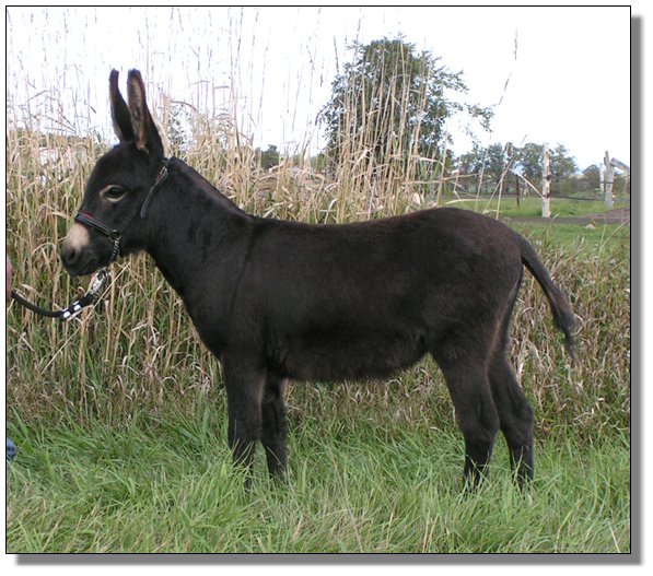 1) Dee's Sheez Mighty Sweet, Dark Miniature Donkey Jennet w/no light points. Dee's Sheez Mighty Sweet