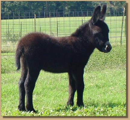 2) HHAA Hit the Fan (Fanny), dark miniature donkey jennet w/no light points born at Half Ass Acrres. HHAA Hit the Fan