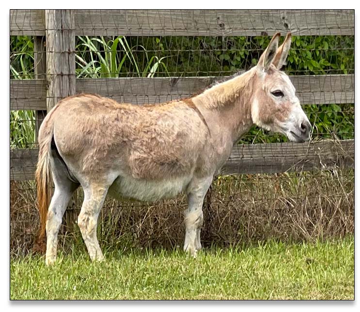 We just purchased Cat in September of 2023 for our personal mammoth riding donkey. We took her to her first show a week later at the American Mule & Music Festival World Championship Mule & Donkey Show where my friend, Savannah Ames, showed her. They won four blues and five seconds after just practicing four times under the expert guidance of Nancy Whitley and Maria Lloyd. I am so very grateful to my many friends that help me enjoy my donkeys. A special thank you to Carrie Brigham and Jay Jaxtheimer for their pointers and advice during the show. We appreciate you.