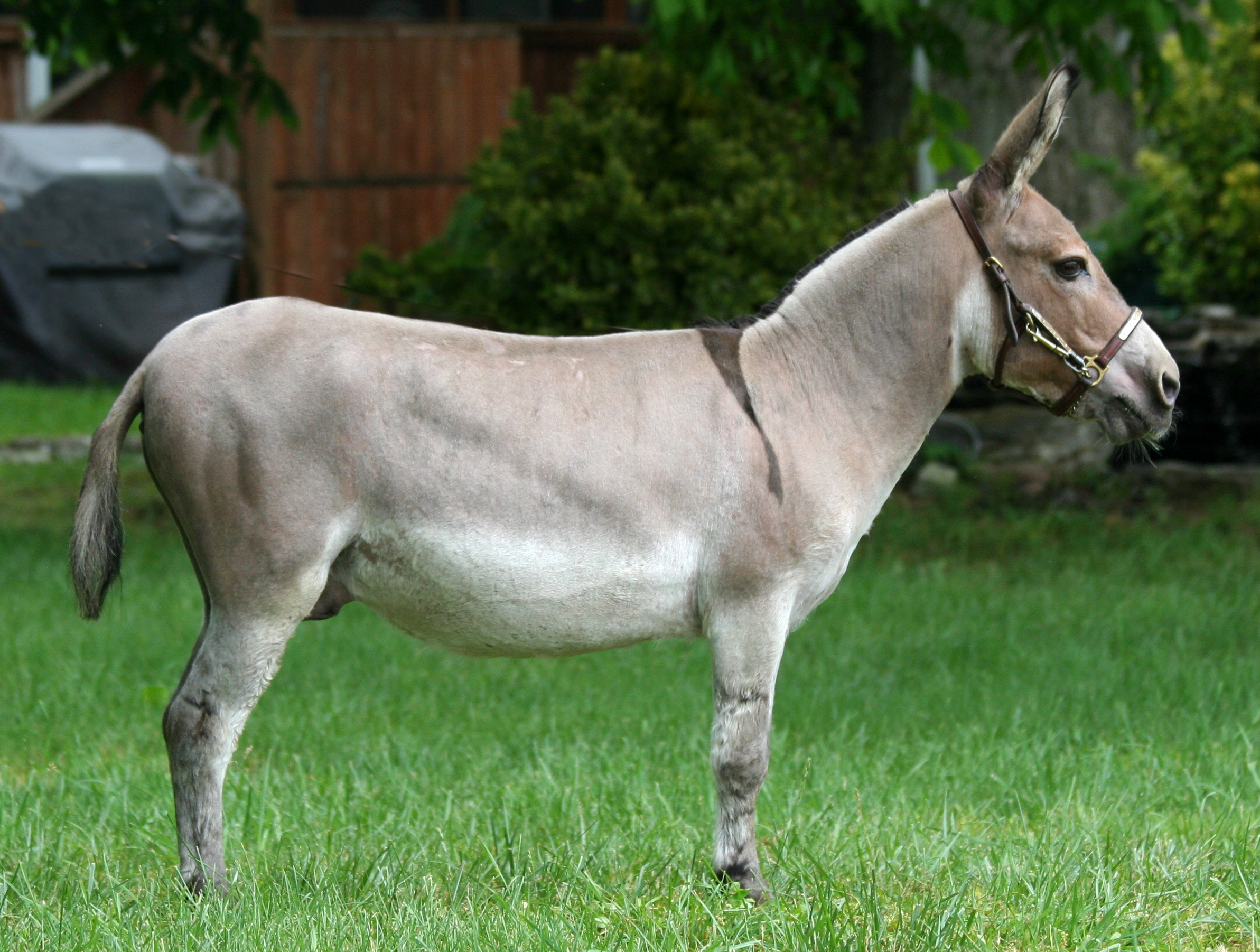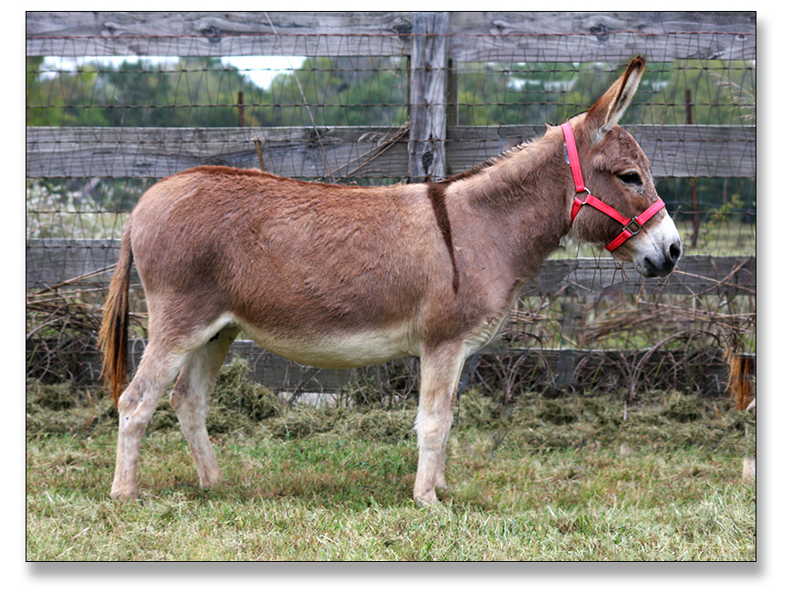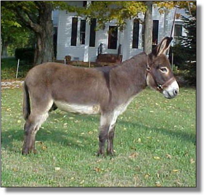 Sadly I must offer Cat for sale due to a severe multilevel degenerative disc problem in my lower back. She is too nice of a donkey to be left out in the pasture. She is perfect for a youth, novice or experienced riders. She is up to date on all vaccinations including Eastern/Western Enchepalitis, Tetanus, Influenza, Rhino, West Nile and Rabies. She has had her hooves trimmed regularly and she has been de-wormed regulary rotating de-wormers. Cat gets along with all sizes of donkeys and horses in or out of the pasture. She is easy to catch and she loads easily as long as you load her with a chain over her nose. If not, she may just decide to do a U-turn and walk away. Her price includes her western saddle, bridle w/bit, show pads, wooden pleasure driving cart and driving harness that needs a couple of parts, her personal banner, her fly mask and winter blanket. Also her hunt seat saddle and bridle will be included as well. Photos sent of saddles, bridles, etc upon request. I will allow payments until the fall at no extra charge as long as you make payments regularly. Her price will be reduced if you don't need her saddles, bridles, cart, etc.